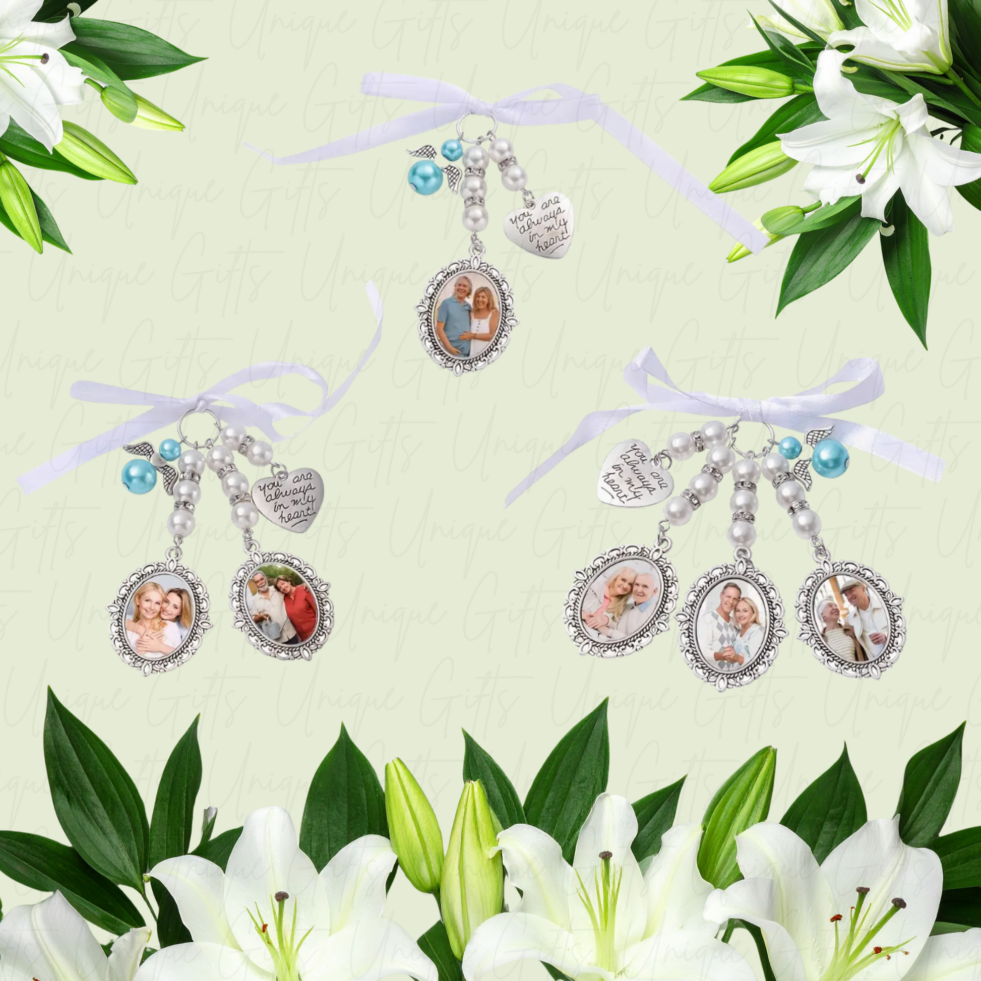 Pearl Pendant Wedding Bouquet Charm – Memorial Photo Pendant Keepsake